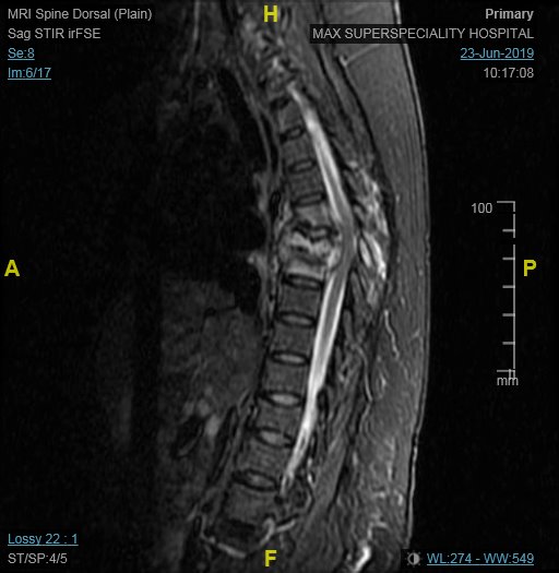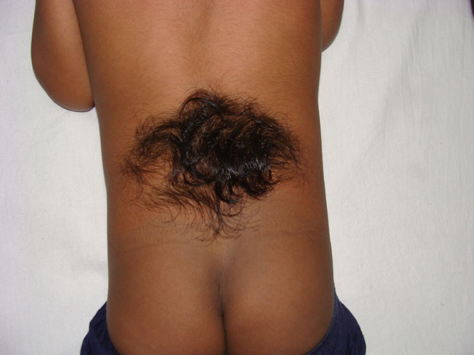 Spinal dysraphism is a congenital defect in the formation of spine and spinal cord. In the newborn, there is often a visible midline swelling over the spine. Spinal dysraphism can also be an occult disorder, which can be suspected by a tuft of hair or a lipoma (‘fatty lump’) over the back. Evaluation by MRI is required and surgical excision is curative. However, a child with paralysis cannot be expected to regain motor function.