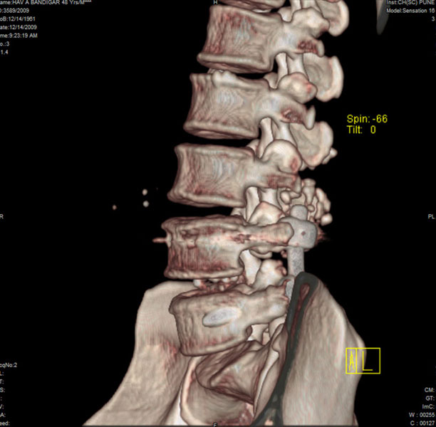 Spondylolisthesis implies slippage of one lumbar vertebra over the next one, causing pain and nerve compression. Patient can also have difficulty in walking and numbness of the legs. Usually these patients need evaluation lumbar spine by MRI and CT scan, followed by spinal instrumentation and fusion.