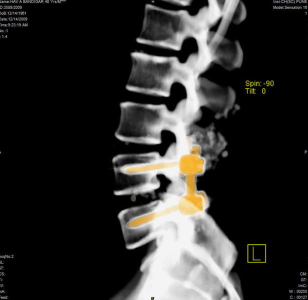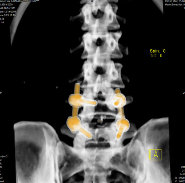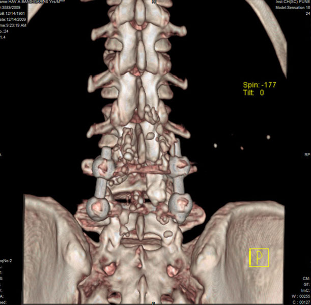 Spinal deformity that requires correction is scoliosis or kyphosis. These deformities require surgical correction and insertion of long-segment implants, with excellent results.